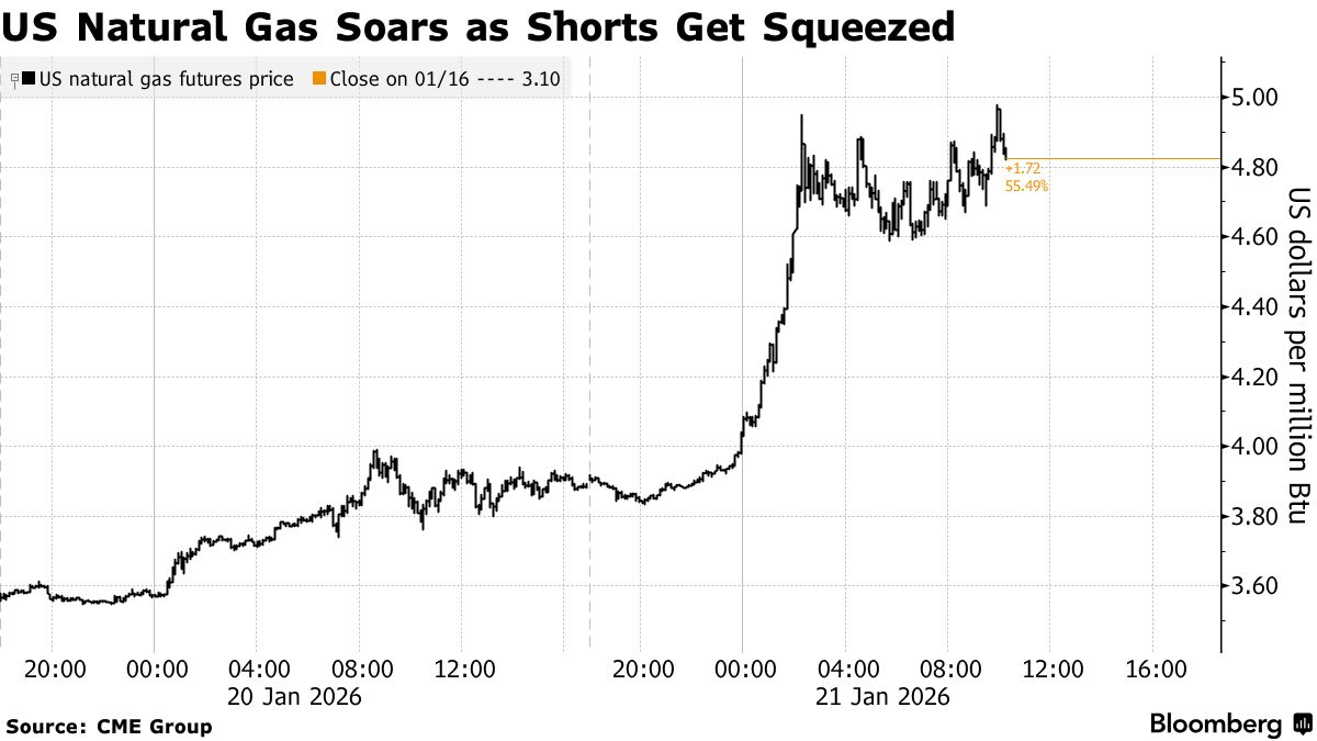 Winter Storm Fern is turning into one of the costliest weather events in recent US history. AccuWeather estimates total damage and economic losses between $105 billion and $115 billion, making it the priciest severe weather event since the Los Angeles wildfires earlier this month. The storm dumped over a foot of snow across 19 states and left more than 700,000 homes and businesses without power by Monday evening. Tennessee bore the brunt, with 246,000 customers in the dark. Power outages alone cost the US $44 billion annually, according to the Department of Energy's National Laboratories. Natural gas markets went haywire. Prices surged above $6 per million British thermal units on Monday for the first time since late 2022, up 68% year-to-date. The February contract jumped 17.7% in a single session. Earlier in the week, futures climbed more than 50% in just two days, marking the biggest weekly gain in over three decades. The price spike reflects two pressures. Heating demand surged as wind chills hit minus 50 degrees Fahrenheit across the eastern US. Production disruptions loom as water freezes inside pipelines, particularly in Texas where infrastructure weatherization remains incomplete despite upgrades following the deadly 2021 freeze. Top gas producers reaped the benefits. Expand Energy and EQT shares rose 6.6% and 7.1% respectively as the broader market gained. Consumers face mounting costs beyond energy bills. Average winter storm insurance claims run $15,000 for water damage and freezing, while wind and hail claims average $14,700. Airlines canceled over 12,500 flights on Sunday alone, the highest cancellation rate since the pandemic. The storm draws comparisons to 2021's Winter Storm Uri, which crippled Texas's grid. This time, grid operators insist they're prepared. But rising power demand from data centers has tightened system buffers, leaving less room for error when extreme weather strikes. |