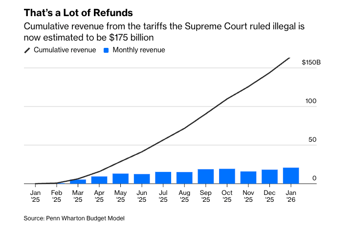 Trump announced a 10% global tariff on Friday after the Supreme Court struck down his emergency tariffs. On Saturday, he posted the rate would rise "effective immediately" to 15%. On Tuesday morning, hours before the levy took effect at 12:01 a.m., US Customs sent importers a memo: the rate would be 10% after all. The whiplash prompted the EU to freeze implementation of its trade deal with Trump from last summer. European Parliament trade committee chairman Bernd Lange called it "pure tariff chaos." The White House said it was working to raise the rate to 15% in a separate order requiring Trump's signature, but provided no timeline. The real fight is over refunds. The government collected an estimated $175 billion in now-illegal tariffs. FedEx filed suit Monday seeking a "full refund," marking the first major company to demand reimbursement after the Supreme Court ruling. Nearly 2,000 importers have filed lawsuits at the Court of International Trade, with thousands more expected. Consumers who paid higher prices will see almost certainly nothing. Refunds go to importers of record like Costco, Walmart, and Target, not end customers. The Harvard Business School Pricing Lab found businesses ate about three-quarters of tariff costs themselves, passing one-quarter to consumers through higher prices. The Tax Foundation estimates tariffs cost the average household $1,000 in 2025. California businesses paid $26.2 billion in illegal tariffs, Texas $11.4 billion. But getting money back will be difficult. Trump and Treasury Secretary Scott Bessent have indicated they won't refund without a fight. The process could take 12 to 18 months, even in the best case. Justice Brett Kavanaugh warned the refund process would be "a mess." There are roughly 600,000 US importers owed money. Many lack the resources to file suit. Larger corporations have advantages when fighting for refunds and are more likely to have passed costs to customers anyway. Senate Democrats are calling for refunds to go to small businesses and for large companies to pass savings to customers, but widespread price declines are unlikely. |